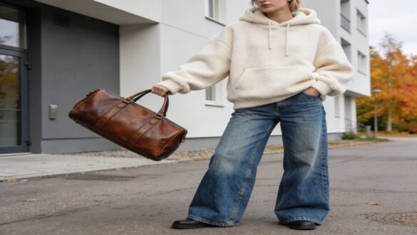 Skórzany płaszcz i szerokie spodnie – jak stworzyć luksusowy look?