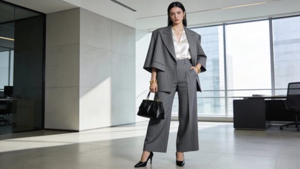 Szary garnitur w prążki to hit – jak stworzyć modny power look?