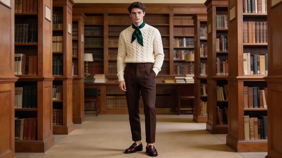 To podejście gwarantuje spójność i wyrafinowanie. Jak wprowadzić to do garderoby? Zacznij od bazowych spodni i marynarek w neutralnych ziemistych kolorach. Potem dodawaj warstwy w innych odcieniach tej samej rodziny. Nie bój się tekstur – aksamitny krawat, wełniany sweter, skórzane buty i bawełniana koszula, wszystkie w zbliżonych kolorach, stworzą głębię, która przykuwa uwagę. Unikaj wtrącania jaskrawych, czystych kolorów jak intensywny błękit czy czerwień – zburzą całą nastrojową harmonię. To właśnie ta kolorystyka buduje tę nostalgiczną, akademicką estetykę w modzie, która przywodzi na myśl uniwersyteckie kampusy i biblioteki w starych dworach.